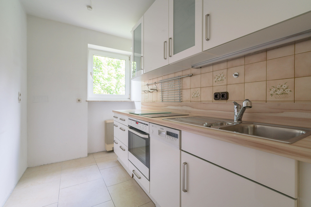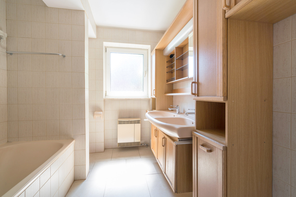 Die Ausstattung der Wohnung ist nicht mehr zeitgemäß und kann je nach Geschmack und Budget erneuert werden.