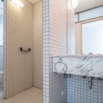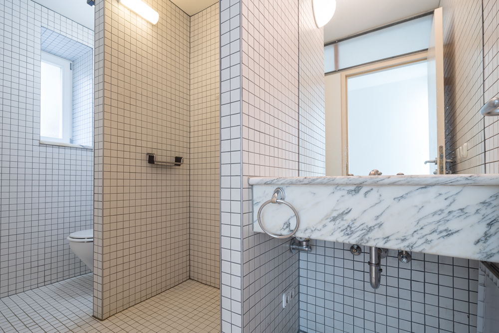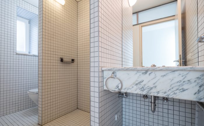 – deckenhoch gefliestes Bad mit Fenster,, Dusche, WC, Waschbecken und Handtuchheizkörper