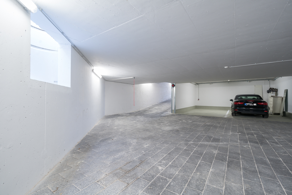 • Geräumige Tiefgarage mit ebenerdig befahrbaren 3m breiten Parkplätzen, einer sehr breiten Fahrgasse und die Möglichkeit für eine Elektro-Ladestation