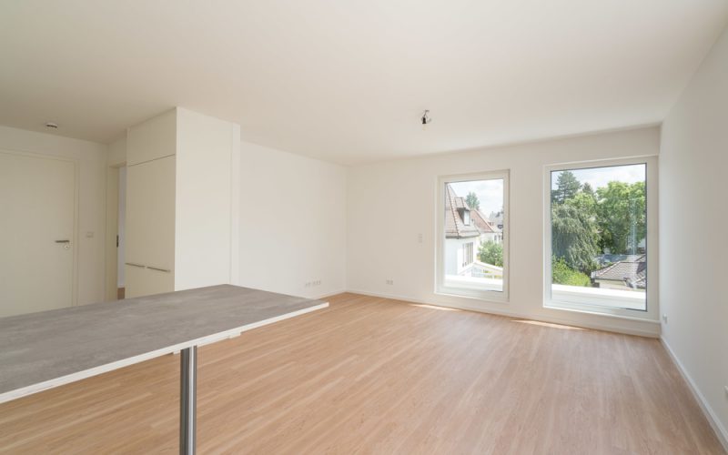 Das im 2. OG gelegene Penthouse ist bequem per Aufzug zu erreichen und besticht durch einen offenen Grundriss und lichtdurchflutete Räume. Von der nach Süden ausgerichteten Dachterrasse können Sie einen herrlichen Blick in die grüne Umgebung genießen. Der Wohn-Essbereich ist mit einer Schreinerküche sowie einem Einbauschrank im Flur ausgestattet. Zum Raumangebot gehören ein Schlafzimmer mit anschließendem Bad sowie ein Arbeits-/Gästezimmer.