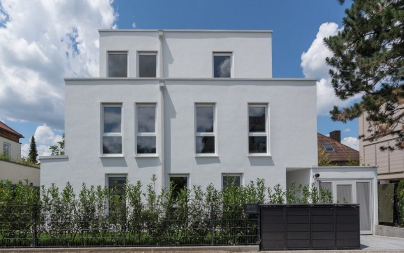 In einem gewachsenen schönen Wohnumfeld in sehr ruhiger Lage präsentiert sich dieses kleine private Mehrparteienhaus. In anspruchsvoller, vom Bauhaus inspirierter Architektur, sind 3 elegante Wohneinheiten mit einer gemeinsamen Tiefgarage entstanden. Ein klares Farbkonzept in Weiß mit transparenten Balkonen strahlen Klarheit und zeitlose Modernität aus.