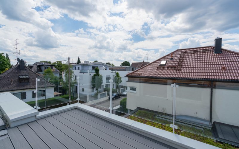 - Süd Dachterrasse ca. 10 m² mit Glas-Brüstungen und PWC-Belag
