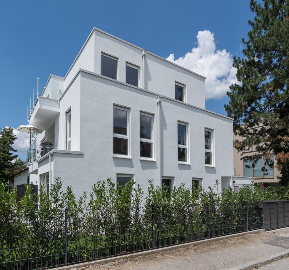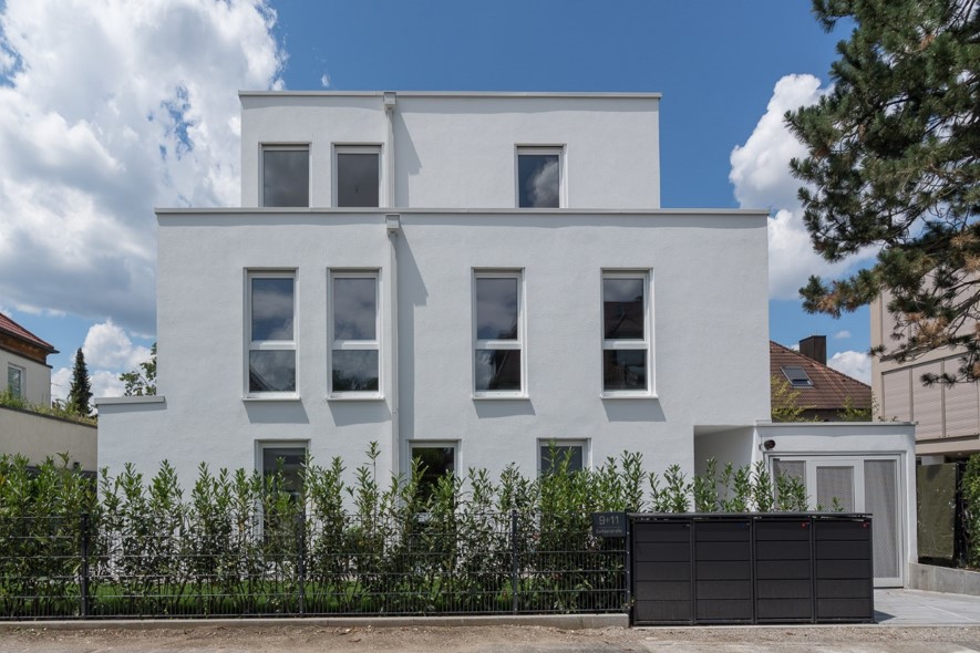 In einem gewachsenen schönen Wohnumfeld in sehr ruhiger Lage präsentiert sich dieses kleine private Mehrparteienhaus. In anspruchsvoller, vom Bauhaus inspirierter Architektur, sind 3 elegante Wohneinheiten mit einer gemeinsamen Tiefgarage entstanden. Ein klares Farbkonzept in Weiß mit transparenten Balkonen strahlen Klarheit und zeitlose Modernität aus.