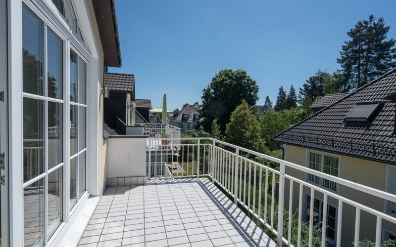 - großer Balkon nach Süden mit Fliesenbelag, Beleuchtung und Aussensteckdose