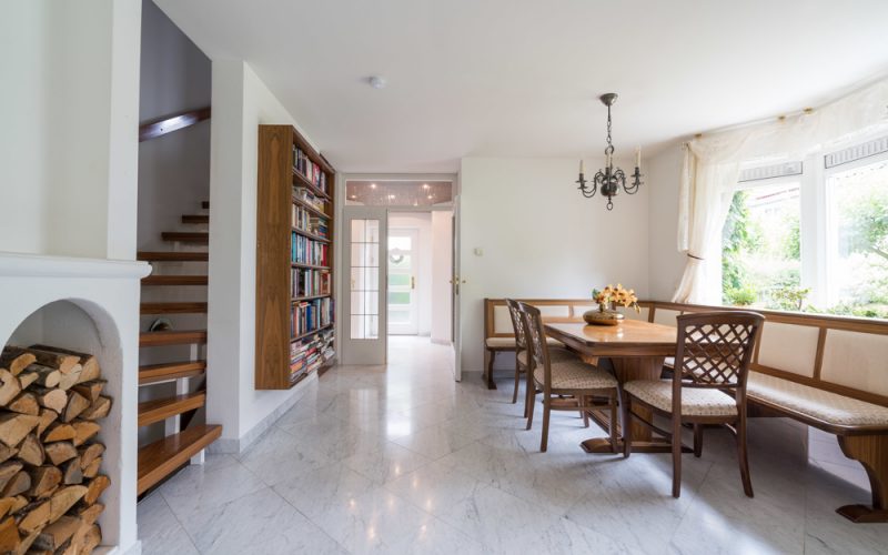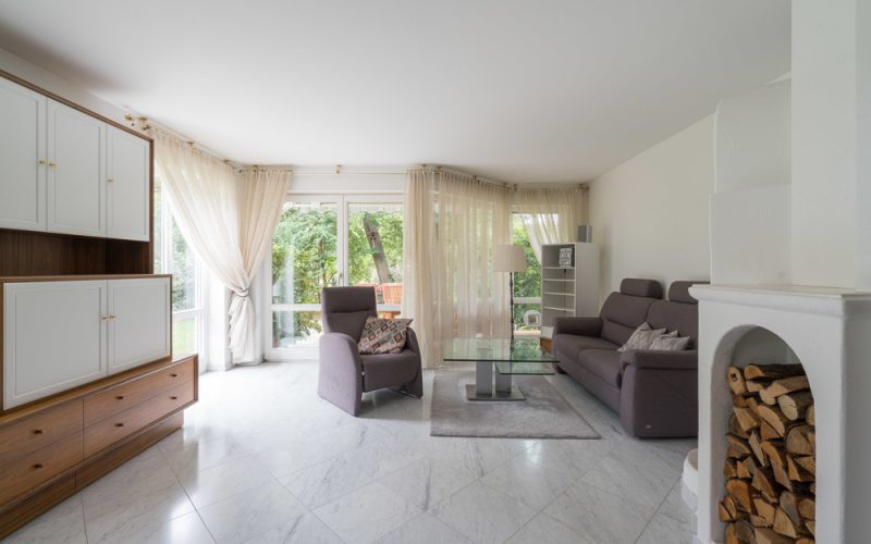- Bodenbelag mit weißen Marmorfliesen durchgehend