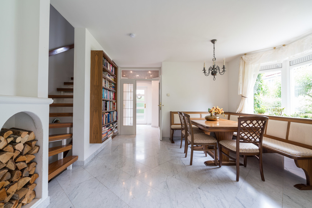 Das Haus strahlt viel Charme und Behaglichkeit durch den besonderen Grundriss mit Erkern und überdachten Balkonen aus. Die Räumlichkeiten verteilen sich auf drei Wohnetagen: Das Erdgeschoss bietet einen großzügigen Wohn-/Essbereich mit offenem Kamin, eine Diele sowie eine geschlossene Küche mit Essplatz.