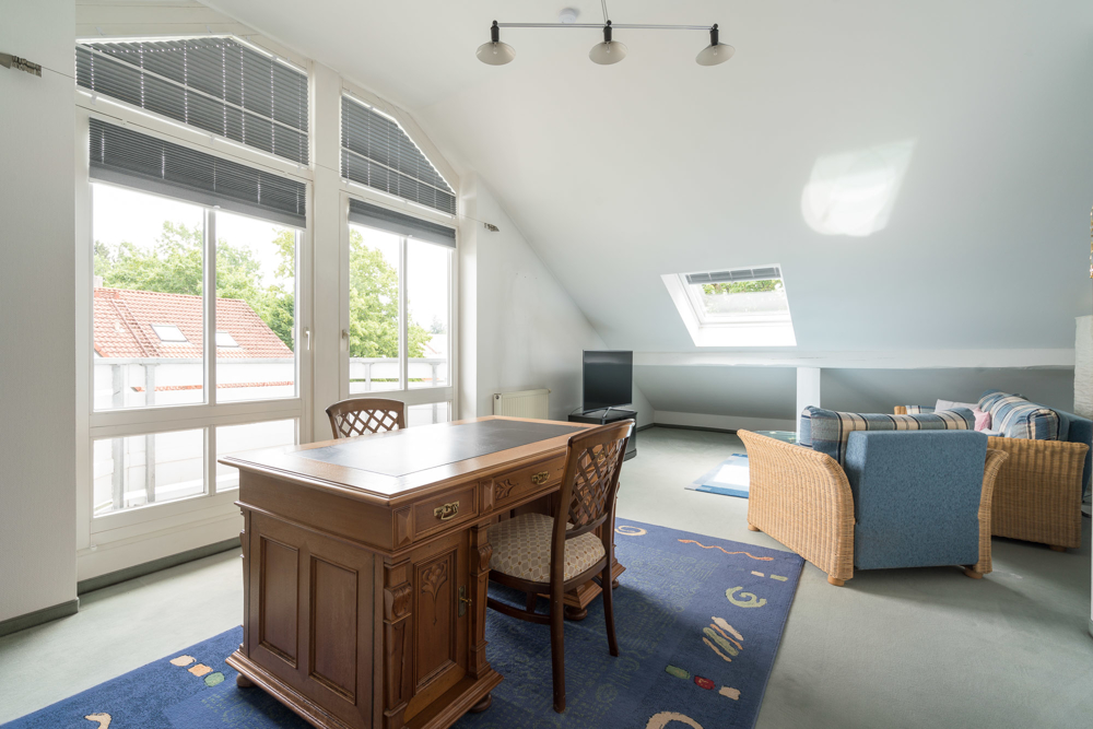 - geräumiges Studio mit gemütlichen Schrägen und hohen Decken bis zum Dachstuhl