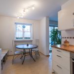 Von der Eingangsdiele und den anschließenden Flur aus sind alle Räume begehbar. Nur die Küche liegt separat und ist mit dem Wohnzimmer durch einen offenen Durchgang verbunden. Die Größe der Küche bietet die Möglichkeit sogar einen Essplatz einzurichten. Im Kaufpreis enthalten ist die komplette neuwertige Einbauküche mit allen Geräten.