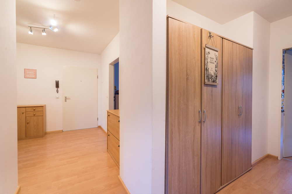 Bodenbeläge sind in allen Zimmern und im Flur einheitlich aus hellem Laminat. Die gesamte Wohnung ist äusserst gepflegt und bietet ein schönes Zuhause.