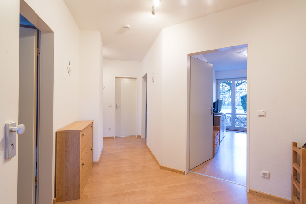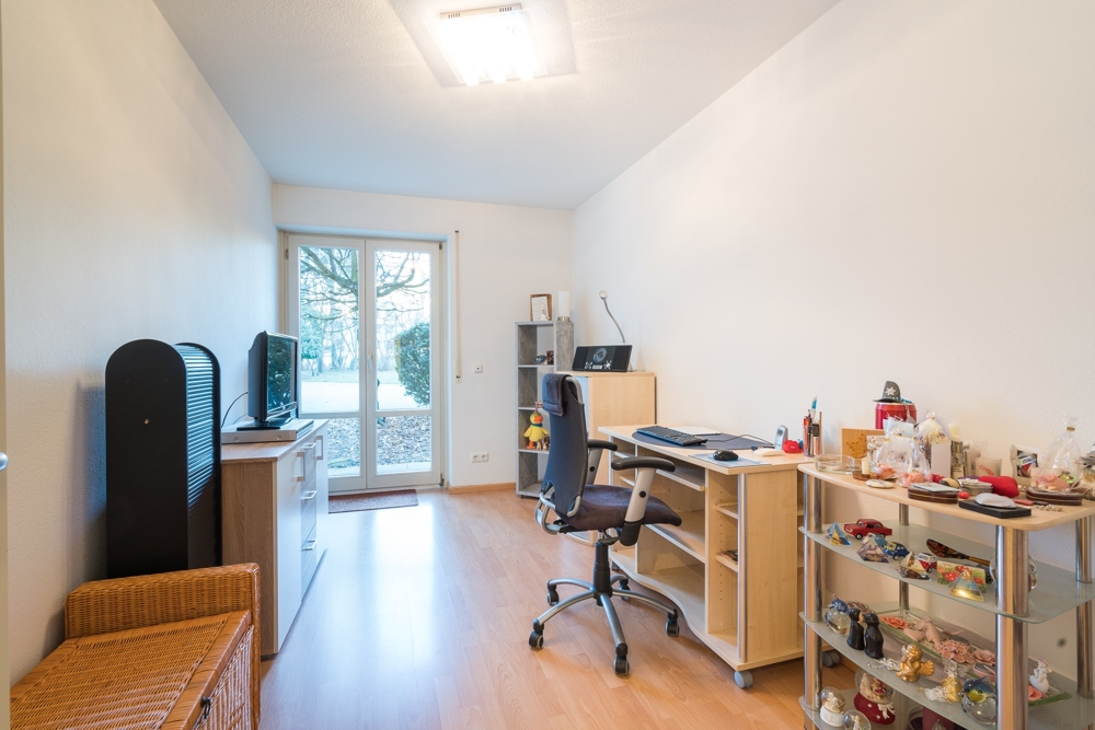 Inmitten einer gepflegten Wohnanlage, umgeben von weitläufigen Grünflächen wohnen Sie hier ruhig und mit viel Platz für Familie, Arbeit und Gäste. Die Lage im Erdgeschoss bietet den Vorteil einer eigenen ca. 65 m² großen Gartenfläche mit einer West- Terrasse für Sonnenstunden ab Nachmittag.