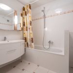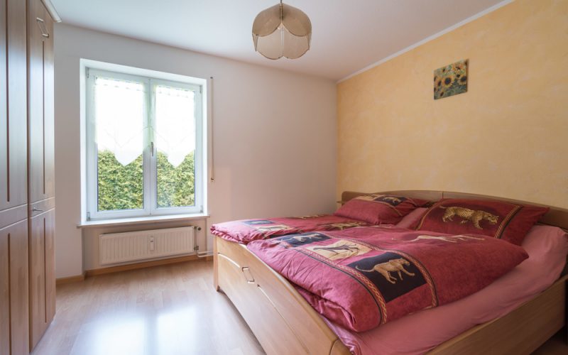 Im rückwärtigen Bereich der Wohnung sind das Schlafzimmer, Badezimmer, Gäste WC und die beiden weiteren Zimmer untergebracht. Sowohl Bad als auch Gäste WC sind mit elektrischer Fußbodenheizung, schönen Fliesen und ausgesuchten Sanitärgegenständen eingerichtet.