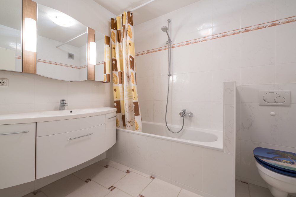 - innenliegendes Bad mit Badewanne, WC, Waschtisch, Spiegelschrank, Handtuchheizkörper und elektrischer Fußbodenheizung (mit Programmierung)