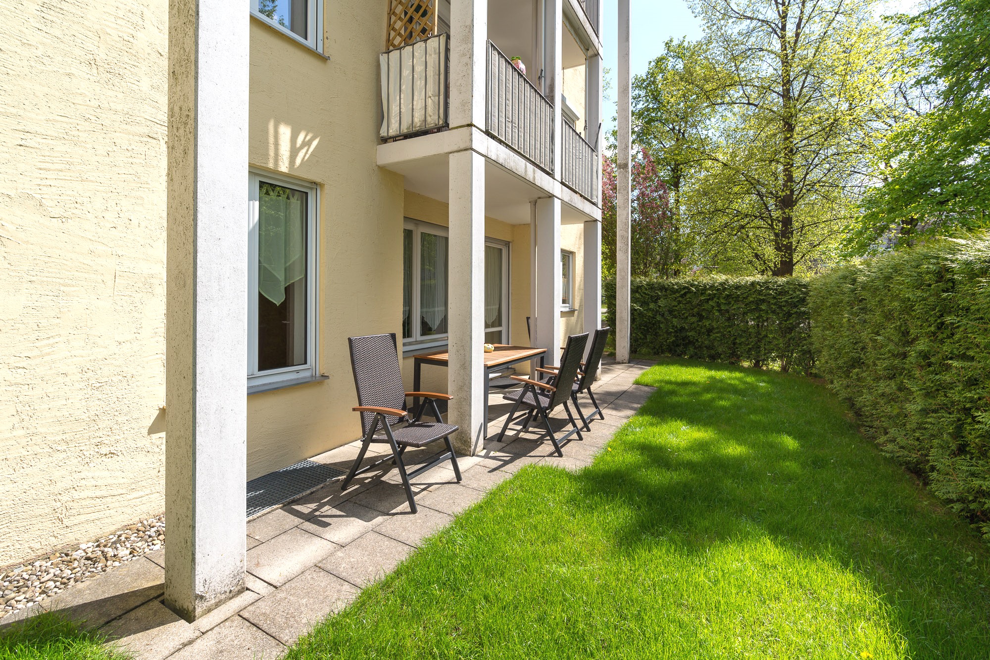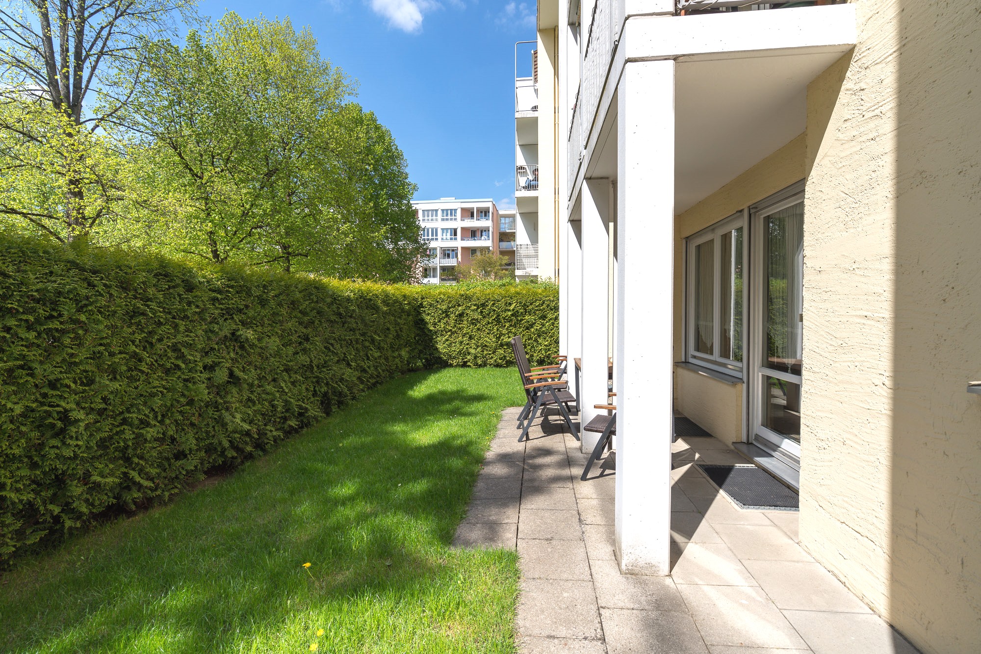 Die Wohnung mit kleinem, privaten Garten befindet sich im Erdgeschoss einer bestes gepflegten Wohnanlage, inmitten von großzügigen Grünflächen.