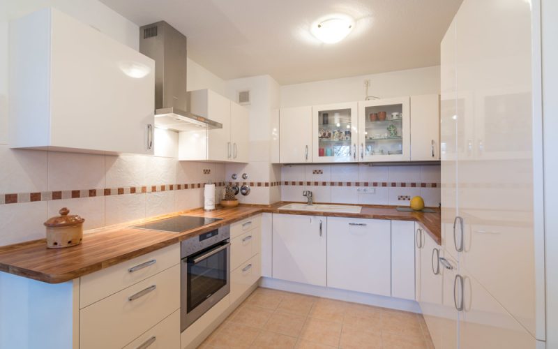 - schöne Einbauküche in weiß Magnolie der Marke Nobilia inklusive Herd mit Cerankochfeld, Backofen, Dunstabzug und Waschmaschine