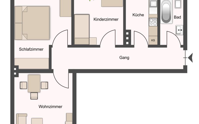 Diese Wohnung im Dachgeschoss besticht mit einem praktischen Grundriss und einer hellen und freundlichen Wohnatmosphäre. Mit einem hohen Kniestock bieten die Räume trotz Dachschrägen gute Einrichtungsmöglichkeiten. Im nach Süden gerichteten Wohnzimmer kann auch der Essplatz eingerichtet werden. Die Küche ist ein eigener Raum und mit der kompletten Einrichtung im Kaufpreis enthalten. Zwei ansprechende Zimmer können zum Schlafen, Arbeiten oder als Kinderzimmer genutzt werden. Der Flur verbindet alle Räume miteinander.