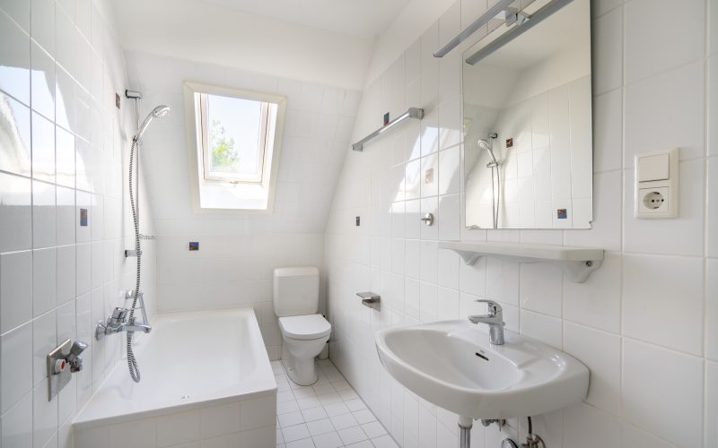 - Bad weiß gefliest mit Badewanne, WC, Waschbecken und Anschluss für Waschmaschine (Renovierung ca. 1996)