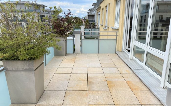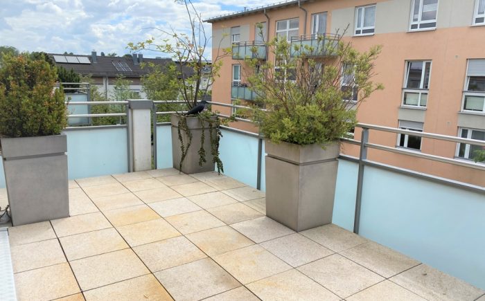 – großer Balkon nach Süden (ca. 14. m²) mit Pflanztrögen, Beleuchtung, Außensteckdose und Markise