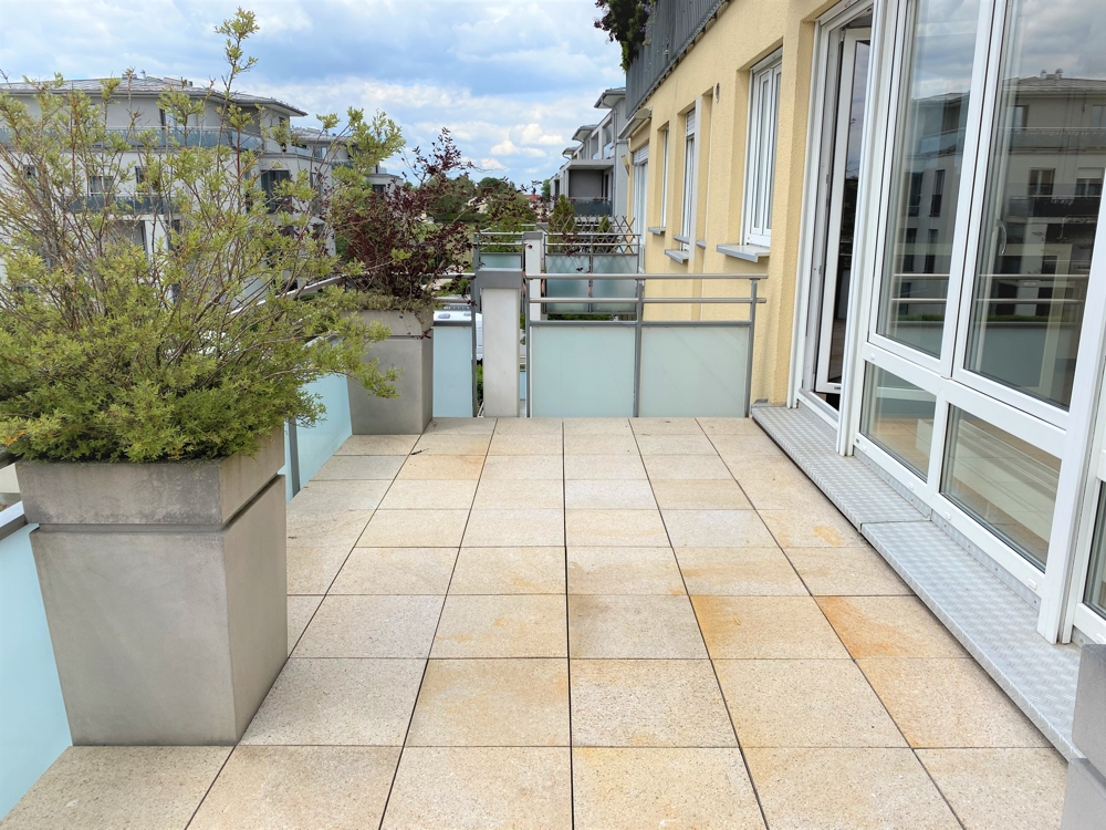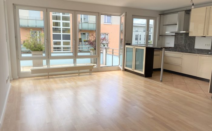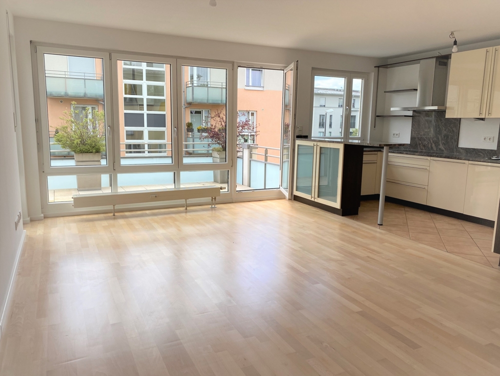 Das Highlight der Wohnung ist der helle und offene Wohn-Ess-Küchenbereich: Eine Qualitäts-Küche mit Granitarbeitsplatte und Einbauschränken in hochglanz ist in den Wohnraum integriert und bietet mit der praktischen Theke kommunikatives Kochen. Der ca. 14 m² große Südbalkon schließt direkt an das Wohnzimmer an und bietet viel Platz zum Relaxen oder zum Sonne genießen.