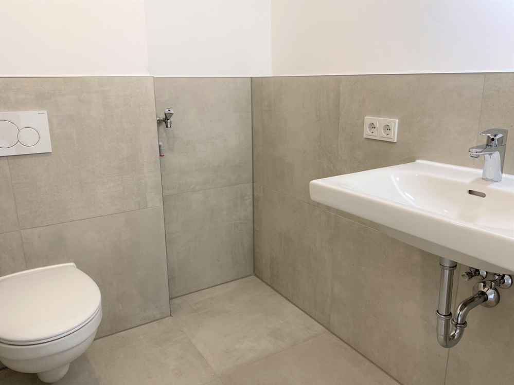 – Gäste-WC mit neuen Fliesen und Waschmaschinenanschluss