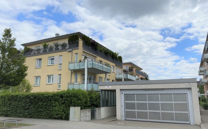 Zu der Wohnung gehören ein Kellerabteil mit Stromanschluss und ein abschließbarer Tiefgaragenstellplatz.
