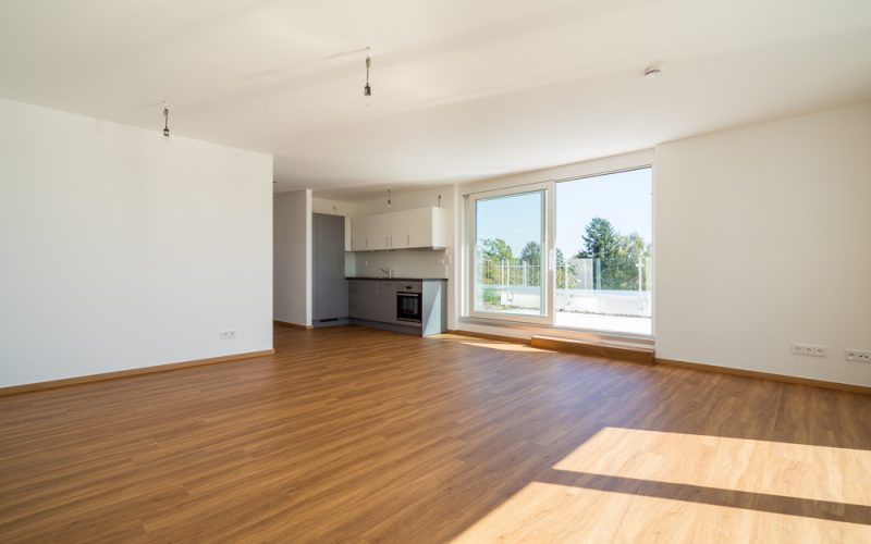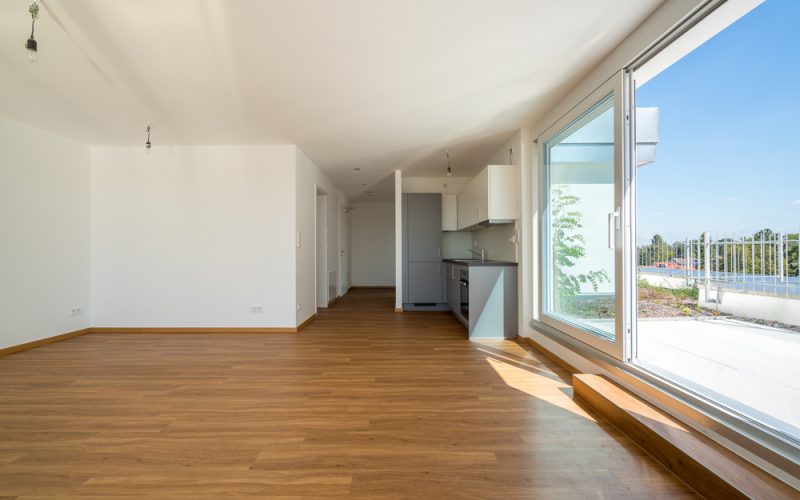 An den großzügigen offenen Wohn-Essbereich schließt eine komplette Einbauküche an, die Böden sind mit hochwertigen Vinyl ausgelegt. Große bodentiefe Fenster im Wohn-Essbereich und der Zugang zur Dachterrasse vermitteln eine sonnige Atmosphäre – auch im Bad sorgt eine elektrische Lichtkuppel für Tageslicht.
