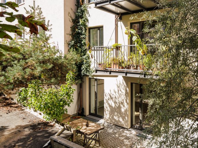 Bei der Verwandlung eines ehemaligen Ladengeschäfts in eine loftartige Wohnung mit Gartenhof ist den Eigentümern ein Meisterstück gelungen: Durch das Entfernen von Wänden, Schaffen von Durchblicken und praktischen Nischen ist eine offene Raumatmosphäre entstanden, die aufgrund der verwendeten Materialien behaglich und ursprünglich wirkt.