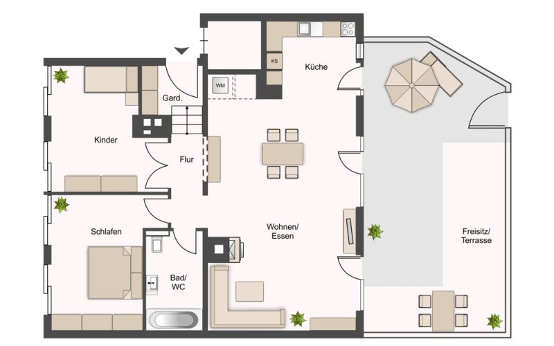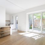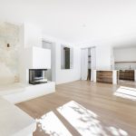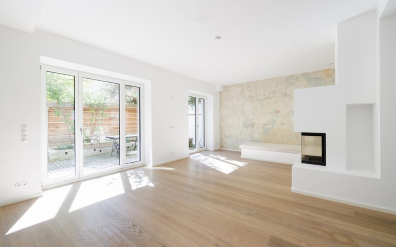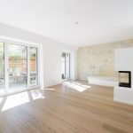 Das Herzstück der Wohnung bildet der großzügige Wohnbereich mit Fenstertüren zum Gartenhof. Wenn diese im Sommer geöffnet sind entsteht eine wunderbare Verbindung nach draußen.