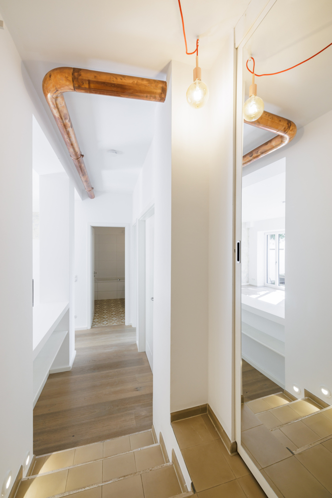 Bei der Verwandlung eines ehemaligen Ladengeschäfts in eine loftartige Wohnung mit Gartenhof ist den Eigentümern ein Meisterstück gelungen: Durch das Entfernen von Wänden, Schaffen von Durchblicken und praktischen Nischen ist eine offene Raumatmosphäre entstanden, die aufgrund der verwendeten Materialien behaglich und ursprünglich wirkt.