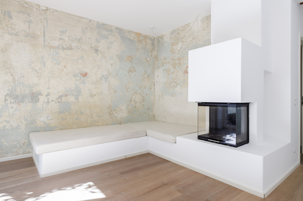 In der kälteren Jahreszeit sorgt ein gemauerter Kaminofen für gemütliche Stunden.