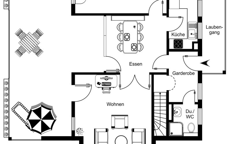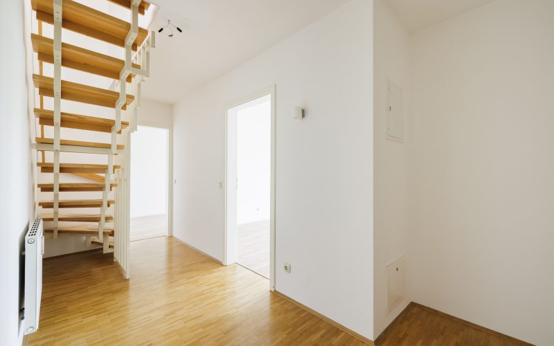 Diese außergewöhnliche Maisonette-Wohnung erstreckt sich über zwei Etagen und vereint anspruchsvolle Architektur mit einer besonders angenehmen Wohnatmosphäre. Sie betreten die Wohnung über einen privaten, überdachten Laubengang, der ausschließlich Ihnen zur Verfügung steht – ein seltener Komfort, der sofort ein Gefühl von Ruhe und Privatsphäre vermittelt.