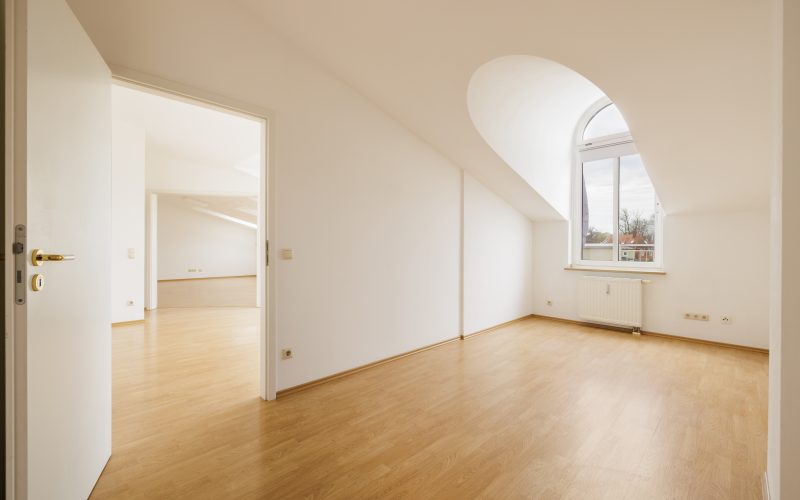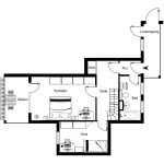 Ein Türdurchgang trennt den Eingangsbereich vom großzügigen Wohnbereich. Dieser gliedert sich in ein etwa 24 m² großes Wohnzimmer mit gemütlicher Dachschräge und charmanten Dachgaubenfenstern sowie ein rund 12 m² großes Esszimmer mit bodentiefen Fenstern, die viel natürliches Licht hereinlassen. Die Küche schließt sich direkt an das Esszimmer an und bietet ausreichend Platz für eine funktionale und moderne Küchenlösung. Ein weiterer Raum auf dieser Ebene eignet sich ideal als Arbeitszimmer, Gäste- oder Kinderzimmer – flexibel je nach Ihren Bedürfnissen.