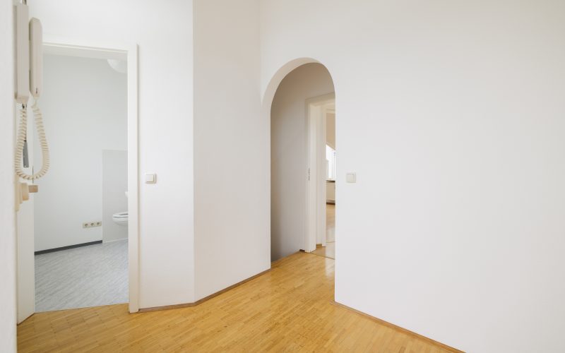 Im dritten Obergeschoss empfängt Sie ein einladender Eingangsbereich mit beeindruckender Deckenhöhe von rund 3,50 Metern. Hier lässt sich nicht nur eine Garderobe integrieren – die Raumhöhe sorgt auch für ein luftiges, offenes Wohngefühl. Direkt angrenzend befindet sich ein Gäste-WC, das bei Bedarf problemlos um eine Dusche ergänzt werden kann.