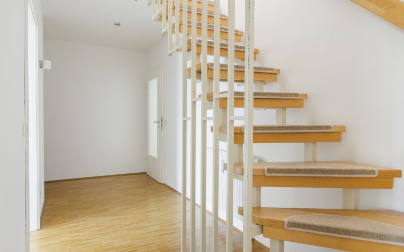 - Innentreppe aus Metall mit Trittstufen aus Buche