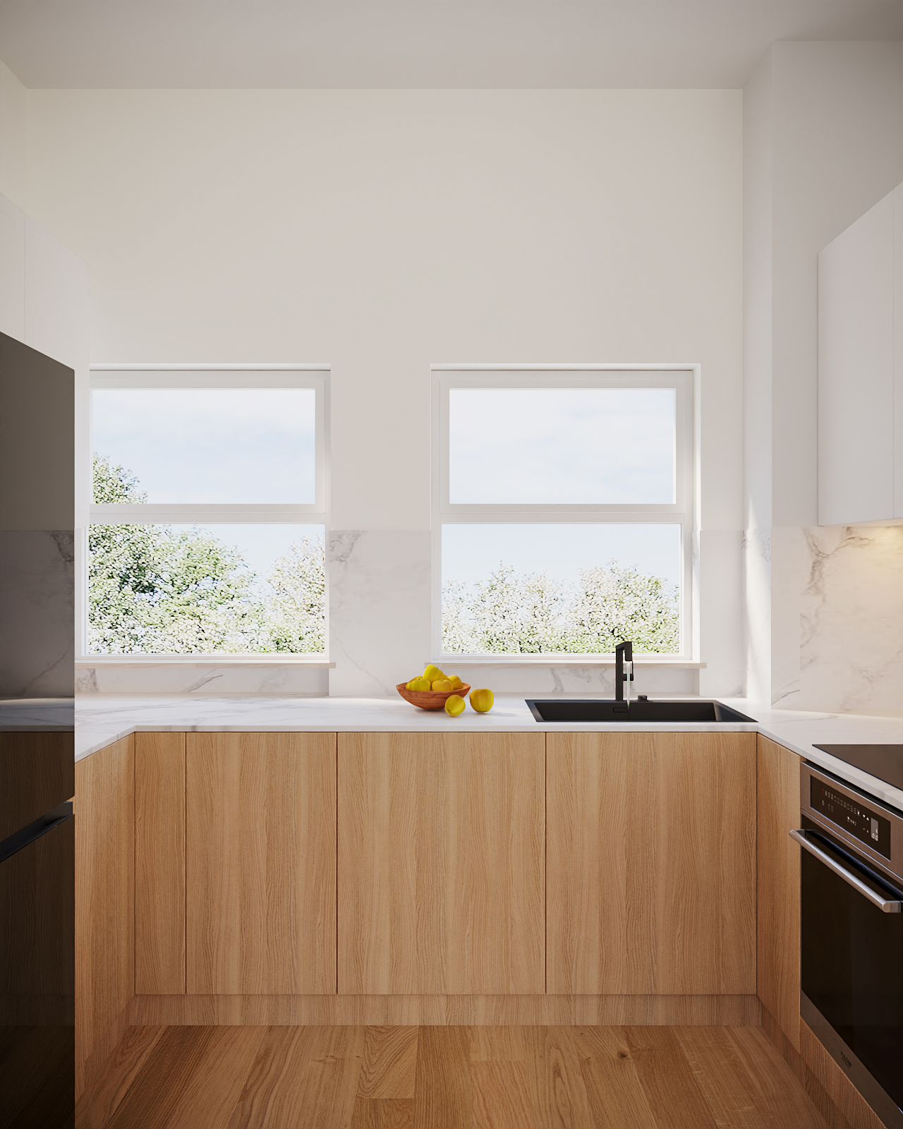 Bei der Gestaltung der Grundrisse wurde großer Wert auf Ihre Wohnqualität gelegt: An der östlichen Grundstücksgrenze, entlang der Bahnlinie, befinden sich ausschließlich Küchen und Bäder – so bleibt Ihr Wohn- und Schlafbereich angenehm ruhig. Ein vorgelagerter Laubengang bietet zusätzliche Abschirmung.