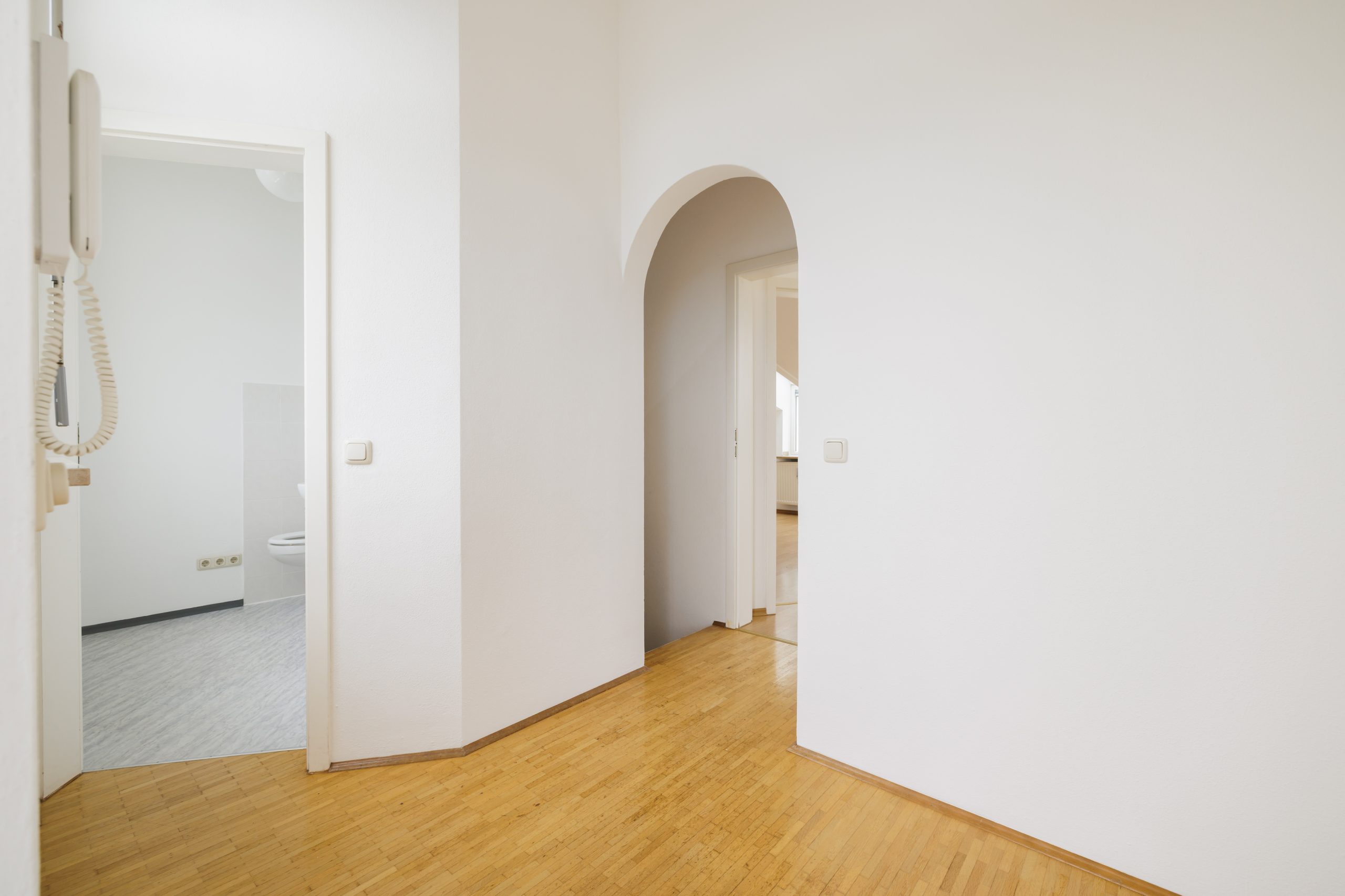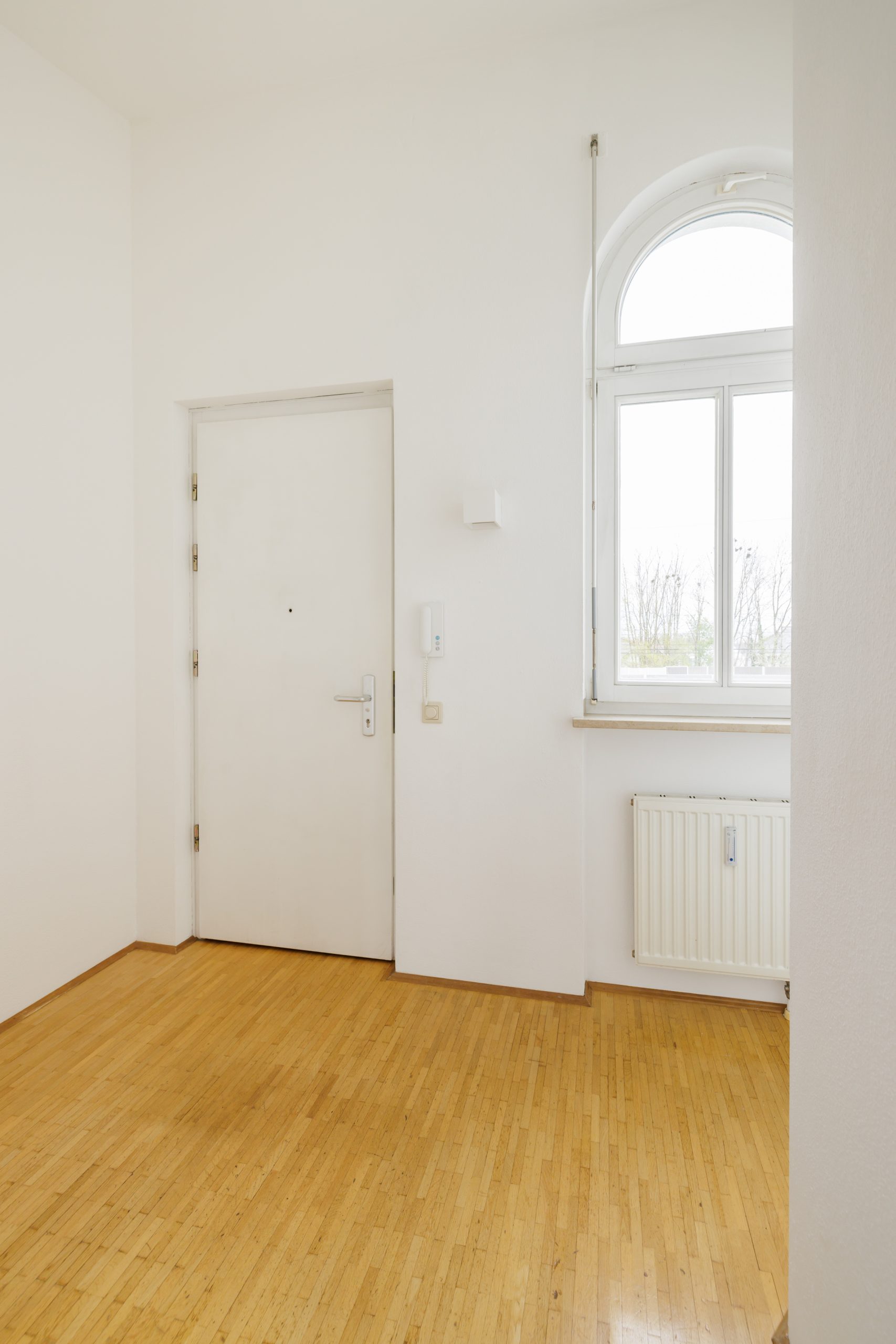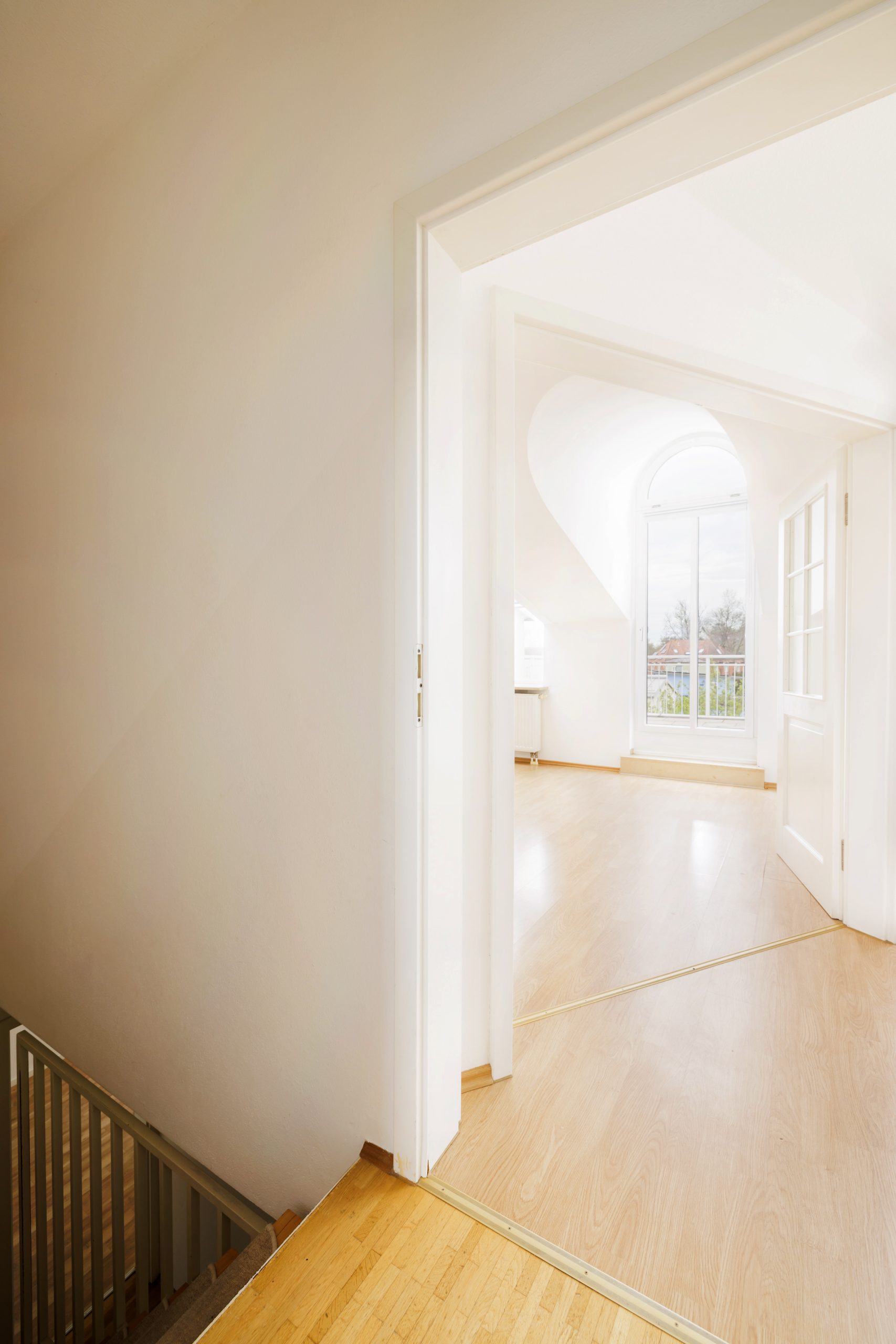 Im dritten Obergeschoss empfängt Sie ein einladender Eingangsbereich mit beeindruckender Deckenhöhe von rund 3,50 Metern. Hier lässt sich nicht nur eine Garderobe integrieren – die Raumhöhe sorgt auch für ein luftiges, offenes Wohngefühl. Direkt angrenzend befindet sich ein Gäste-WC, das bei Bedarf problemlos um eine Dusche ergänzt werden kann.