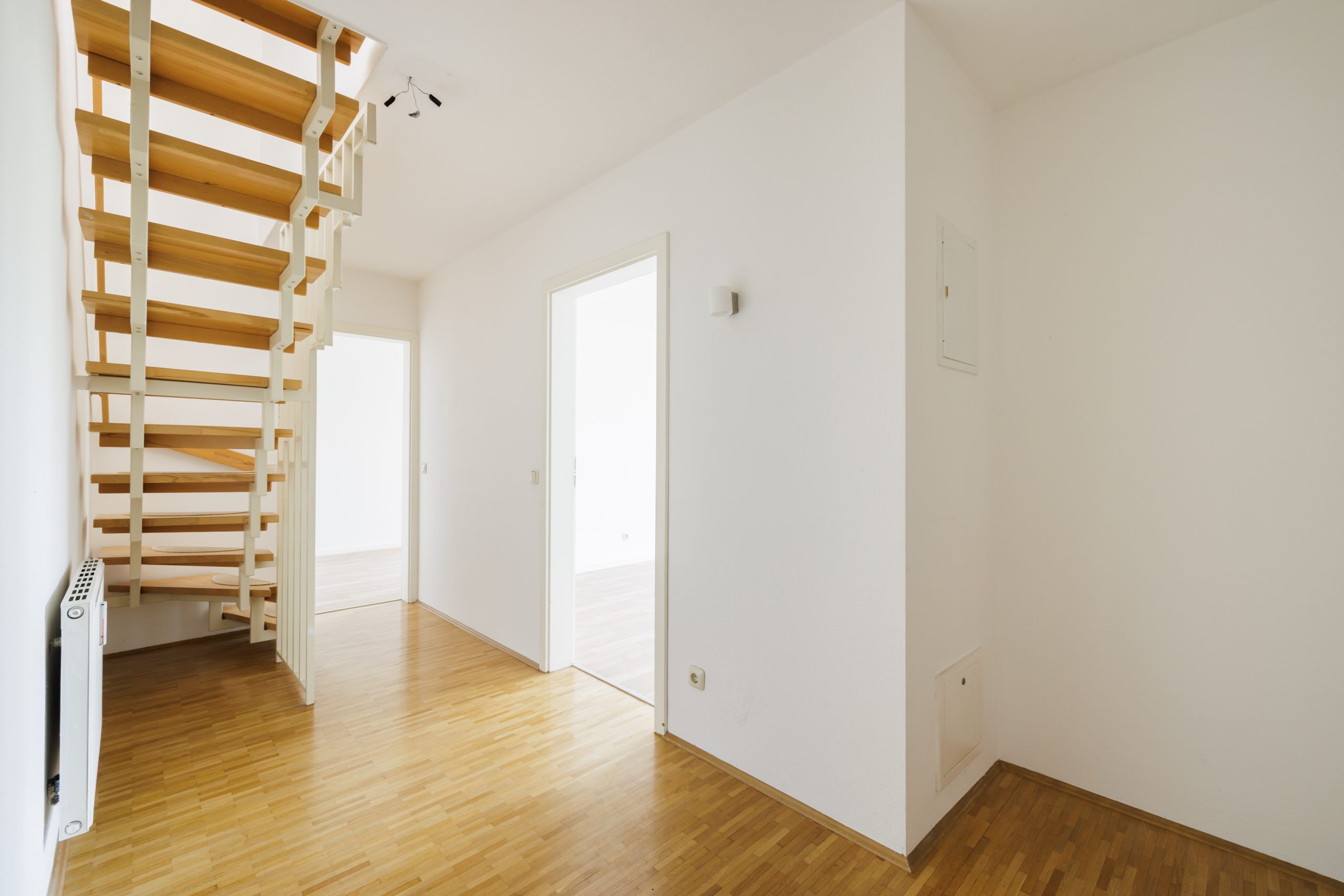 Diese außergewöhnliche Maisonette-Wohnung erstreckt sich über zwei Etagen und vereint anspruchsvolle Architektur mit einer besonders angenehmen Wohnatmosphäre. Sie betreten die Wohnung über einen privaten, überdachten Laubengang, der ausschließlich Ihnen zur Verfügung steht – ein seltener Komfort, der sofort ein Gefühl von Ruhe und Privatsphäre vermittelt.