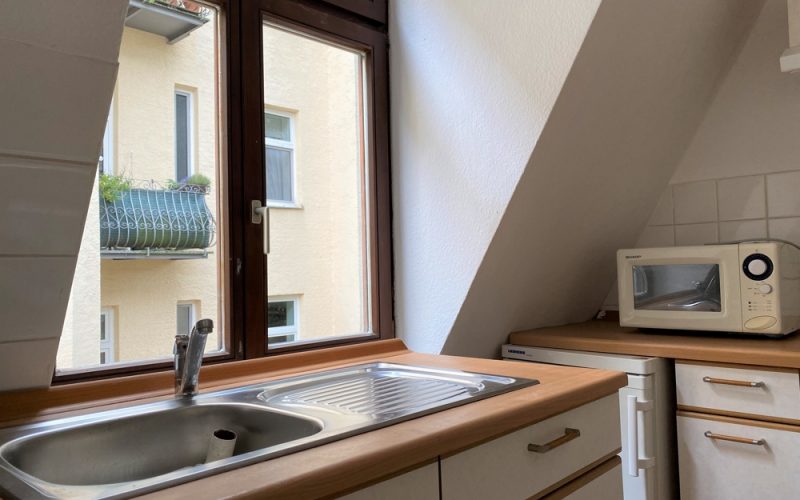 Die Zimmer und der Flur sind mit Laminatböden ausgestattet. Die Küche bietet Raum für einen kleinen Essplatz und wird mit neuen Küchenmöbeln ausgestattet. Das Bad ist mit weißen Fliesen ausgestattet und verfügt über ein Fenster. Ein kleines Abteil im Dachspeicher kann als Abstellfläche genutzt werden. .
