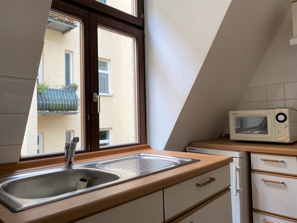 Wohnen im Rückgebäude eines denkmalgeschützten Altbaus am Isarufer: Diese 2-Zimmer-Wohnung befindet sich im Dachgeschoss (ohne Aufzug) eines Mehrfamilienhauses mit viel Originalität.