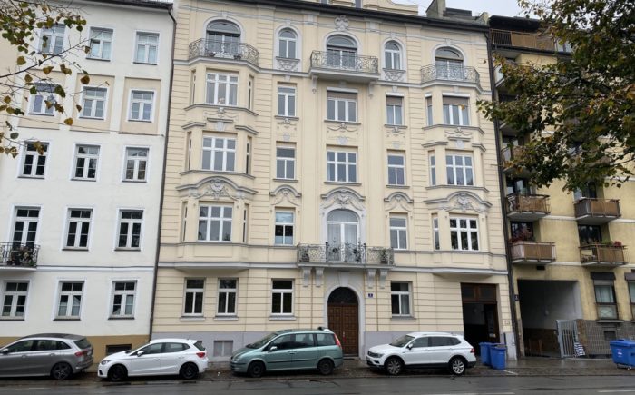 Wohnen im denkmalgeschützten Altbau am Isarufer: Die schöne 3- Zimmer-Wohnung befindet sich im Hochparterre ( Erdgeschoss) eines gepflegten Mehrparteienhaus mit viel Originalität. Die Fassade und das Treppenhaus wurden erst im letzten Jahr renoviert.