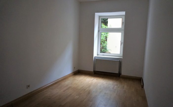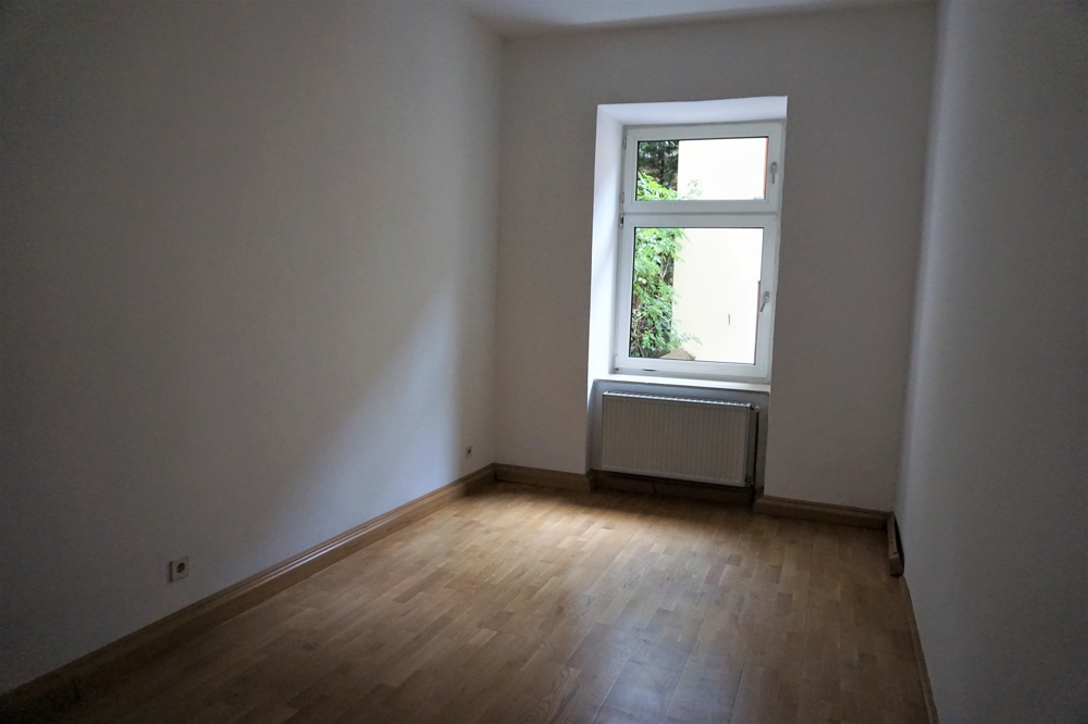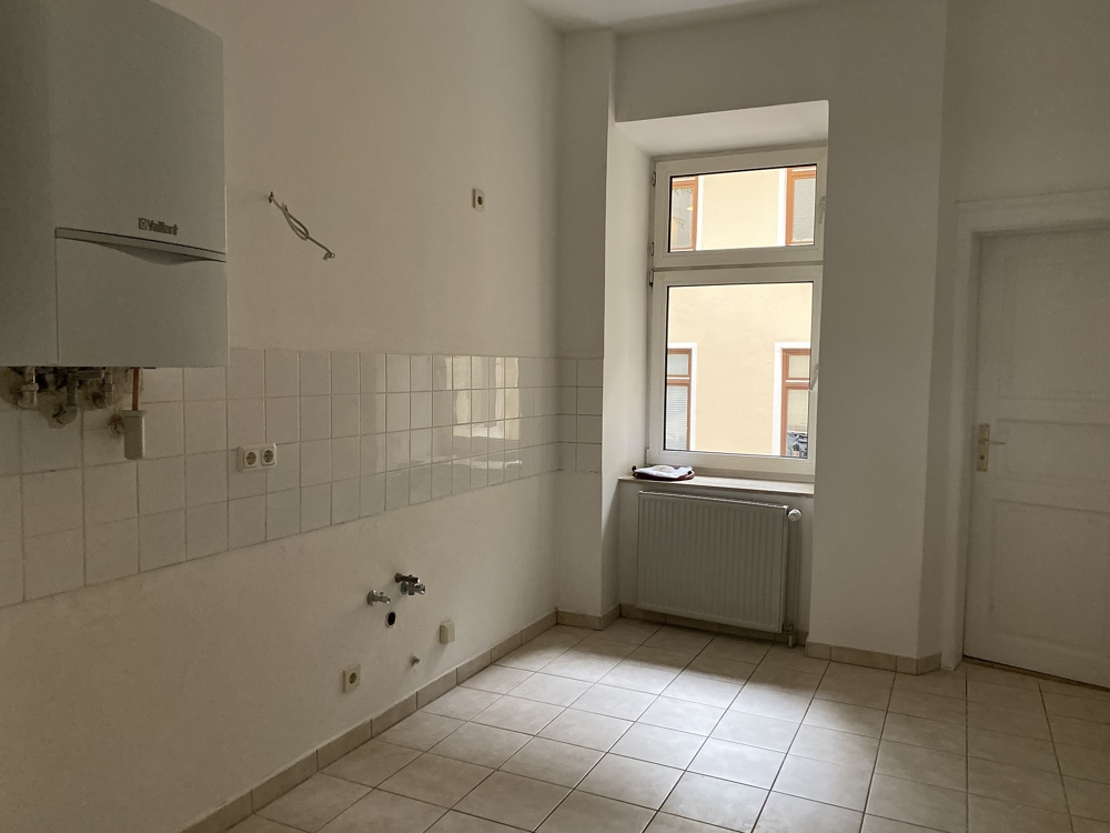 In allen Wohnräumen und im Flur ist Parkett verlegt, auch im Fischgrätmuster. Die Küche, Bad und WC sind mit praktischem Fliesenboden versehen. Eine Küchenausstattung wird von den Mietern nach eigenem Geschmack selbst eingebaut. In der Küche gibt es die Möglichkeit, eine Essplatz einzurichten.