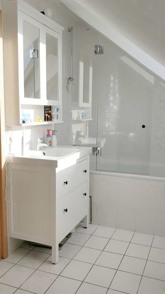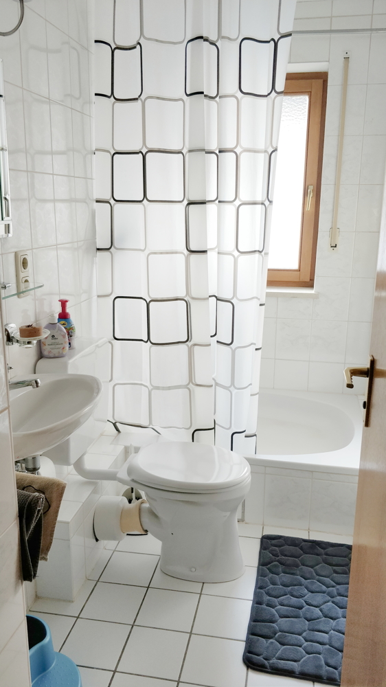 – Bad in weiß mit Badewanne, Dachflächenfenster, Anschluss für Waschmaschine und Trockner im Dachgeschoss