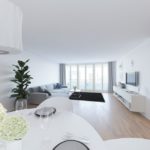 Der großzügige Wohn-Essbereich lässt sich vielseitig einrichten und ist zum modernen Innenhof ausgerichtet. Die komplett eingerichtete Einbauküche fügt sich sehr schön in das geschmackvolle Ambiente ein und ist im Kaufpreis enthalten.