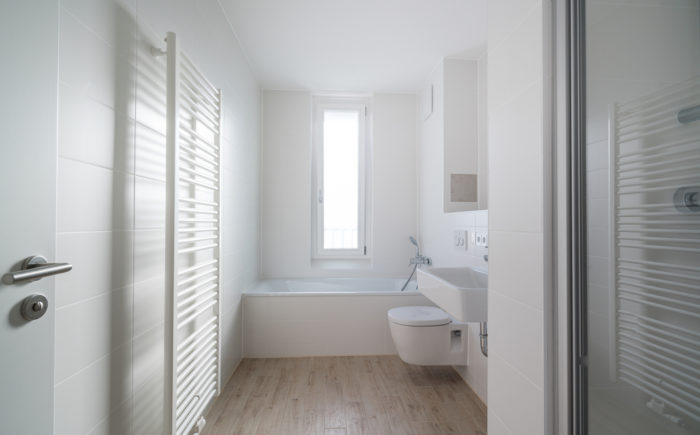 – Designer-Badausstattung von Grohe, Kermi, Ideal Standard und Kaldewei mit Badewanne, überbreitem Waschbecken, Handtuchheizkörper, bodengleiche Dusche mit Echtglasduschwand, WC