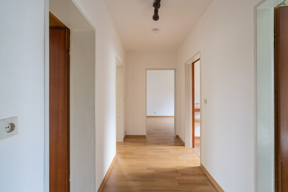 Ein großzügiger Grundriss verspricht viel Wohnraum und auch die Anordnung der Räume ist sehr praktisch. In der Küche können Sie noch einen kleinen Essplatz einrichten Das Bad verfügt über ein Fenster und das 3. Zimmer ist als Kinder-, Gäste- oder Arbeitszimmer gut nutzbar. Vom ca. 25 m² große Wohn-Essbereich haben Sie einen schönen Blick in den grünen Garten und auf dem großen Süd-Balkon können Sie lange die Sonne genießen